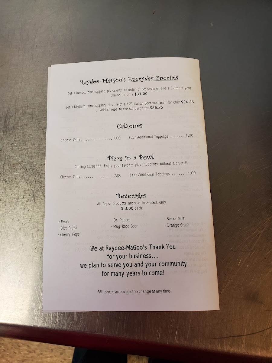 Step inside Raydee Magoo's and you immediately sense a warm, familiar buzz that’s part neighborhood gathering spot, part family table. This is a place where the pace is easy but lively, where the hum of good company blends with the faint aroma of melted cheese and seasoned dough from the open kitchen. The setting invites you to settle in—whether with a crowd rooting for Friday night football or a quiet catch-up over a slice.