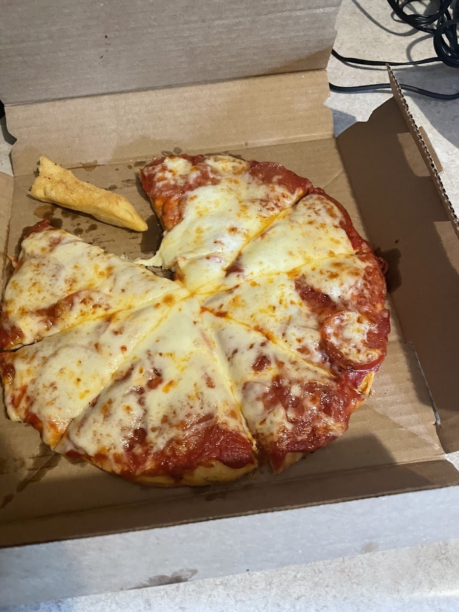 Great pizza!! Sausage is tasty, sauce not too spicy, just needs a little more browning on the top and bottom. Cheesy garlic bread was eh…but great pizza!!!